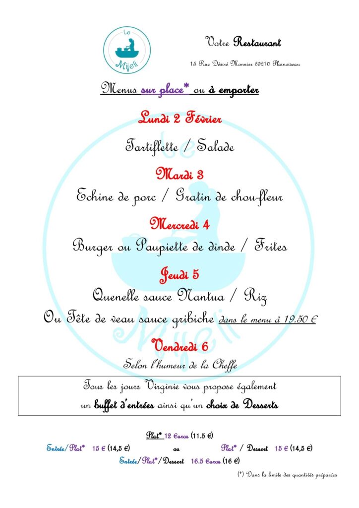 Le plat du jour reste disponible à emporter.