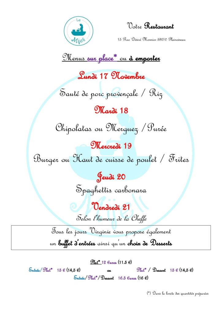 Concernant le menu GRENOUILLES : Travaillant avec des grenouilles surgelées, vous pourrez venir en manger les midis (du lundi au vendredi) à condition de les réserver 2 à 3 jours avant . Le menu restera à 38€ avec entrée, grenouilles et son accompagnement et dessert.