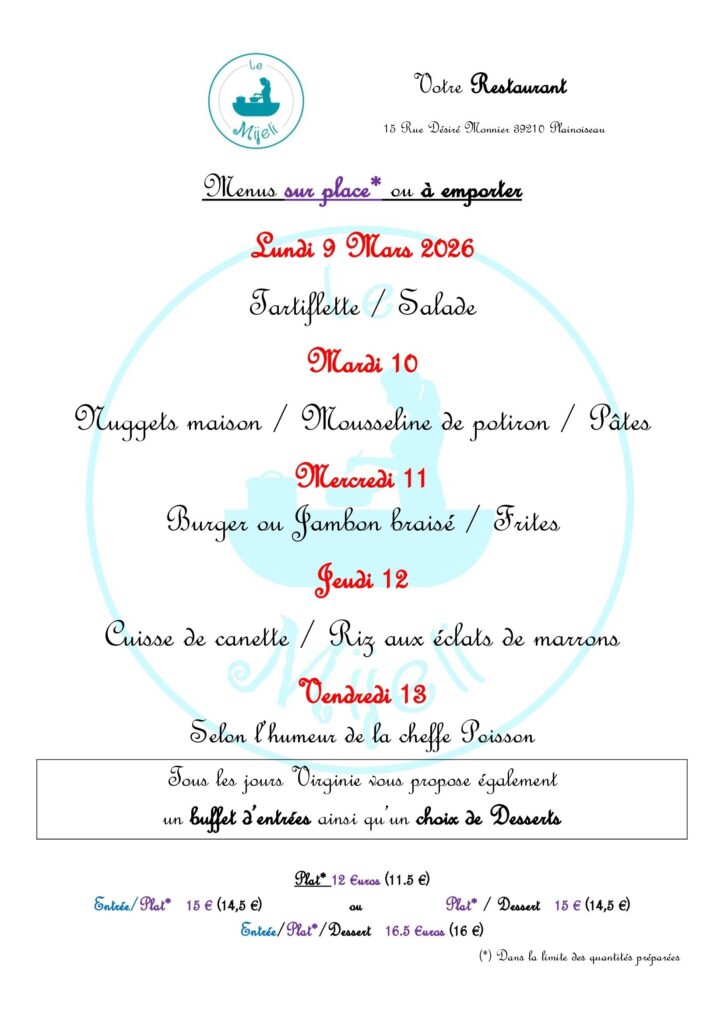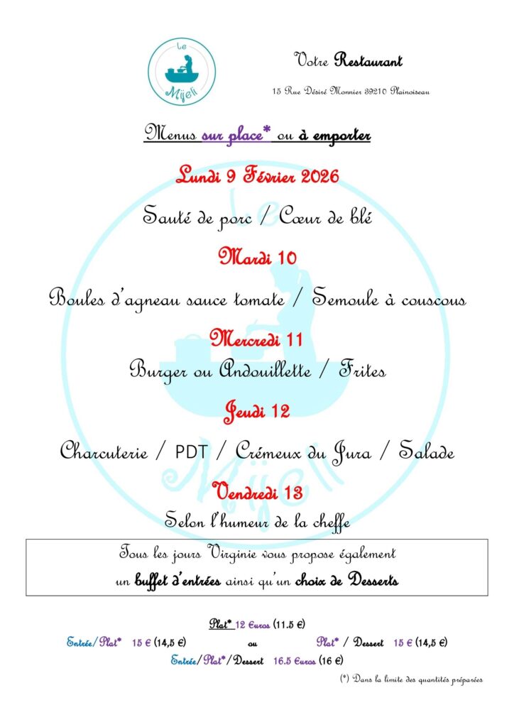 Formule : menu du jour